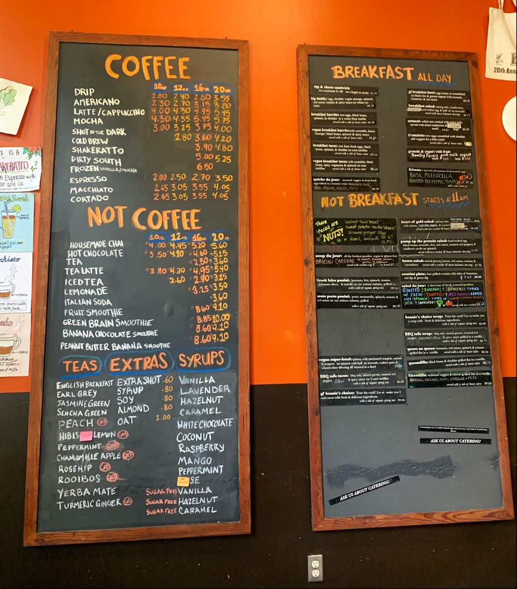 Welcome to The Sentient Bean, a delightful café nestled across from Forsyth Park in Savannah, GA. This cozy haven boasts a menu bursting with both vegetarian and vegan options, making it a staple for health-conscious food lovers. Start your day right with their Breakfast Burrito, featuring bootleg farm eggs, arugula, and housemade salsa wrapped in a warm tortilla. For something lighter, the Quiche Du Jour offers a rotating selection that keeps the culinary experience fresh and exciting.
